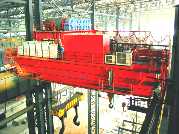 (1)构抗冲击:主梁、端梁用更厚的钢板(比如普通起重机主梁用 16mm 钢板,冶金款用 25mm 以上),还会在易被钢渣砸中的部位(比如小车下方)加 “耐磨护板”(高锰钢材质,抗砸又耐磨);